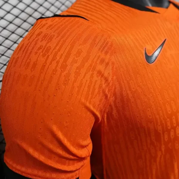Com design clássico que destaca o icônico laranja vibrante, a camisa simboliza a tradição e o estilo marcante do futebol holandês. Ao longo das décadas, esse visual tornou-se um dos mais reconhecidos do futebol mundial, representando gerações de jogadores talentosos e momentos memoráveis em competições internacionais.
